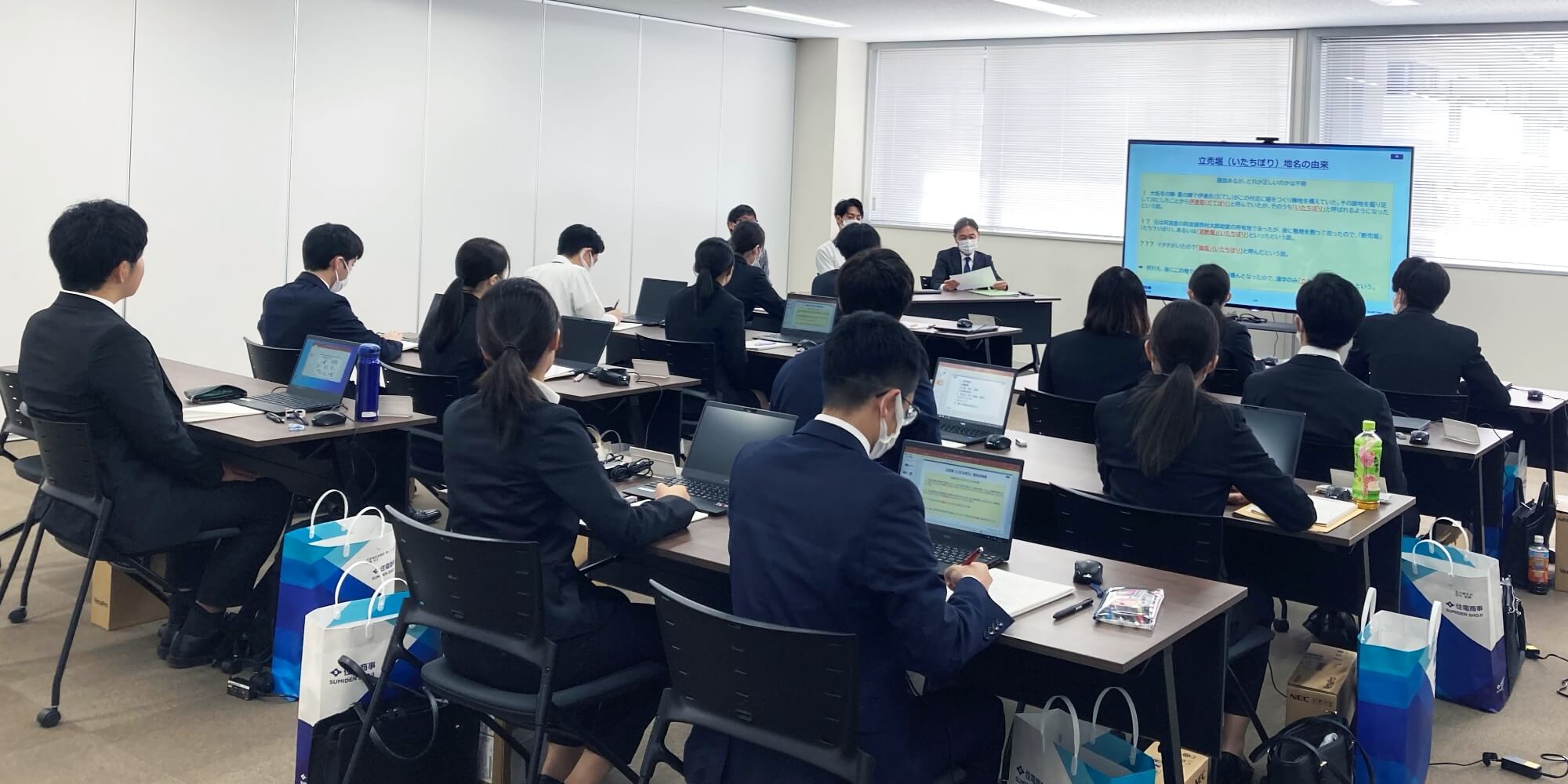 - 4月に大阪の本社にて約1ヶ月の集合研修を実施後、年間を通して住電商事のことやビジネスマナー、コンプライアンス等について学びます。座学だけでなく、物流センターや住友電気工業(株)の工場の見学なども行っています。