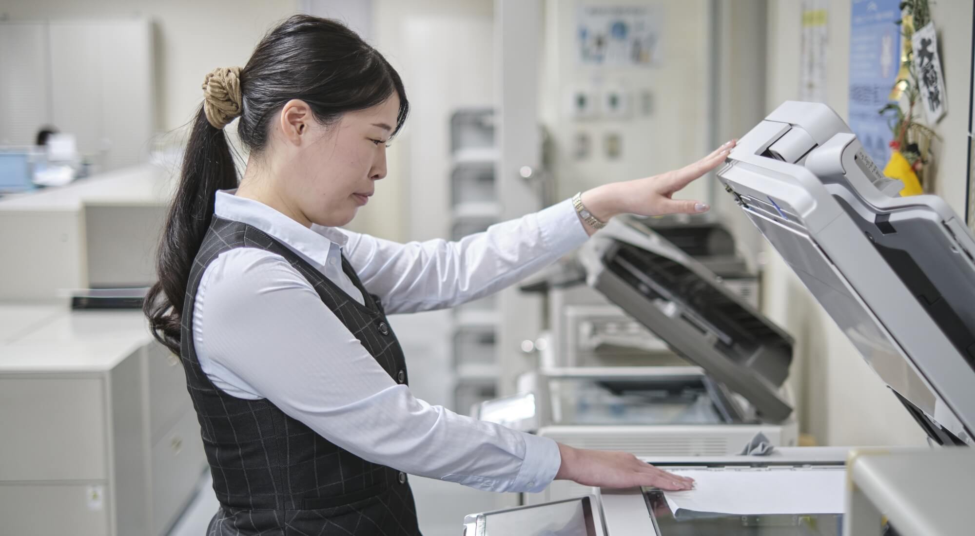 始業は9:00からですが、パソコンをつけてまずメールチェックやFAXの確認から始めます。